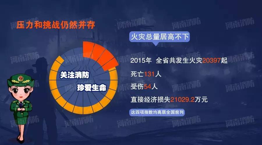 他指出,2015年,全省連續(xù)發(fā)生了平頂山魯山縣“5.25”特大火災(zāi)事故,鄭州市“6.25”重大火災(zāi)事故損失慘重,教訓(xùn)深刻,消防工作形勢面臨歷史“冰點(diǎn)”;為改變火災(zāi)形勢十分嚴(yán)峻的局面,按照省委、省政府“三查三保”統(tǒng)一部署,全省各級、各部門深刻汲取教訓(xùn),痛定思痛,舉一反三,扎實(shí)開展消防安全專項(xiàng)治理行動,全面落實(shí)“大約談、大曝光、大執(zhí)法”,共檢查社會單位163.4萬家,督促整改火災(zāi)隱患214.1萬處;通過各級、各部門大量艱苦細(xì)致的工作,實(shí)現(xiàn)了火災(zāi)形勢的逐步好轉(zhuǎn)。下半年,全省發(fā)生火災(zāi)8358起,死亡39人,其中,較大以上火災(zāi)事故4起,死亡13人,同比分別下降20%、48%,特別是圓滿完成上合首腦會議消防安全保衛(wèi)任務(wù),實(shí)現(xiàn)了涉會場所不冒煙起火,重點(diǎn)部位不發(fā)生火災(zāi)事故,全省不發(fā)生較大以上火災(zāi)事故的既定目標(biāo),為上合會議的勝利召開創(chuàng)造了良好的消防安全環(huán)境。